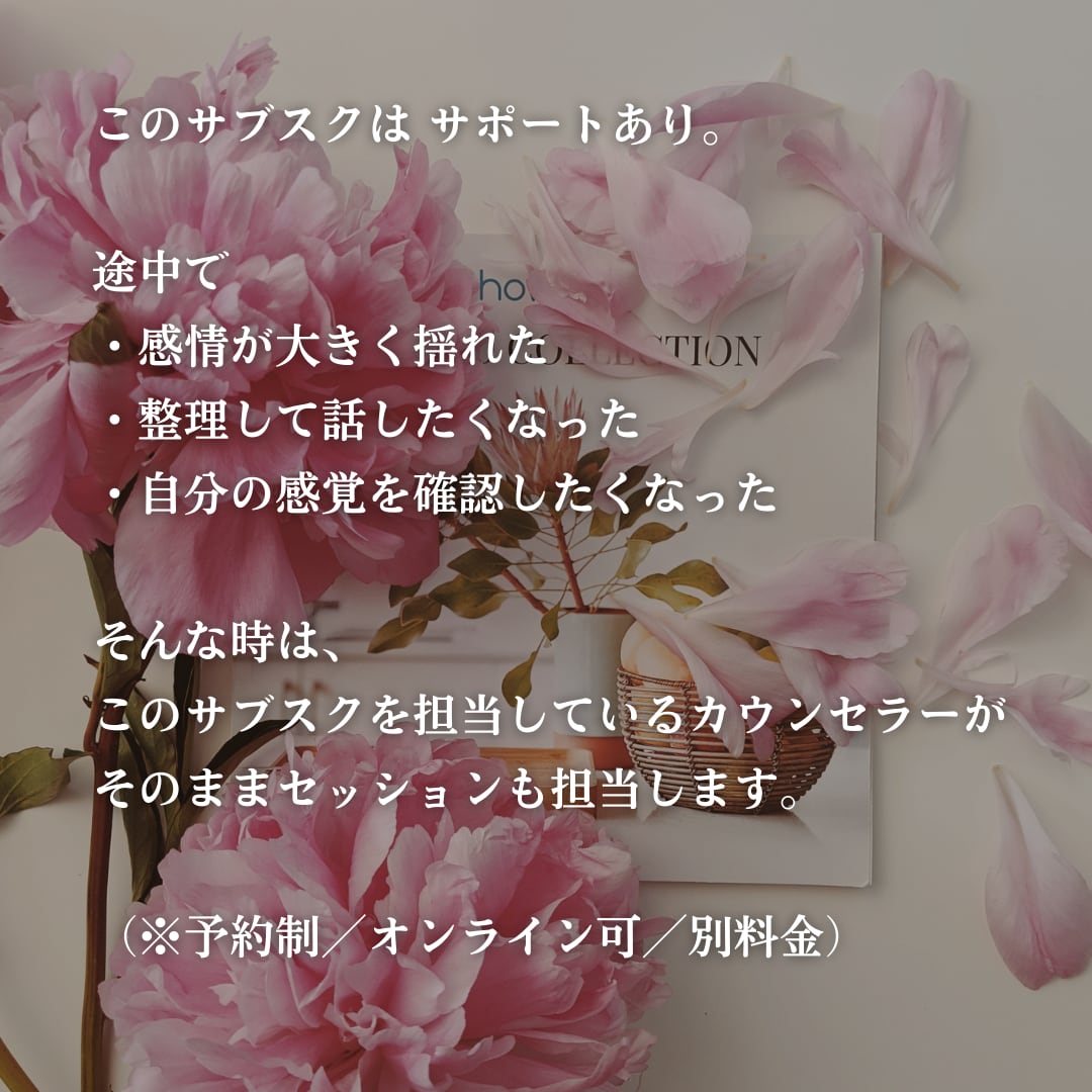 ※ カウンセラーによるサポートセッション(希望制/別料金)もご用意しています