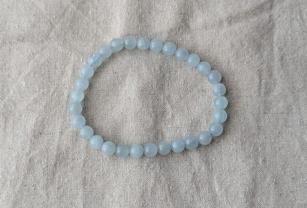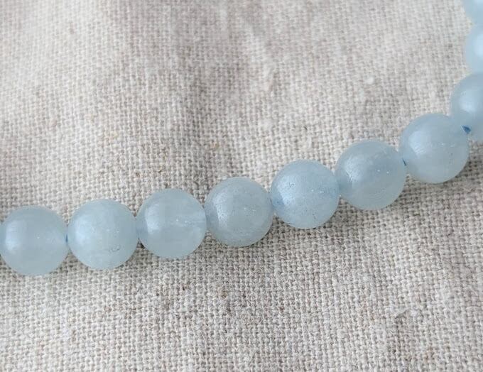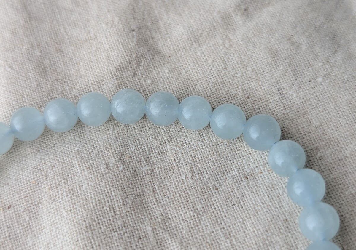 このアクアマリンミルキーブレスレットは、優しいミルキーブルーの色合いが特徴で、身に着けるだけで穏やかな気持ちにさせてくれます。