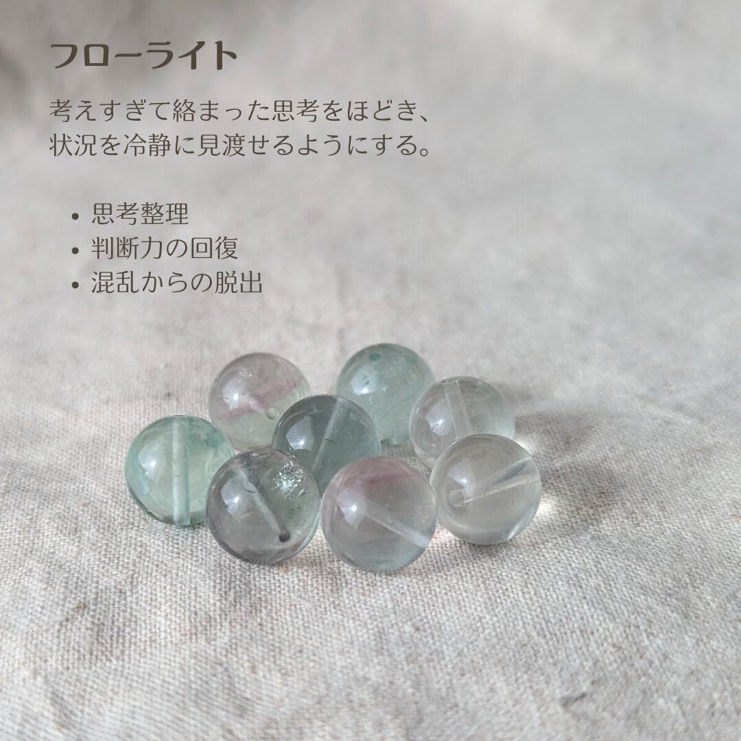 フローライトは、 感情を強く動かす石ではなく、 思考を静かに整える石。