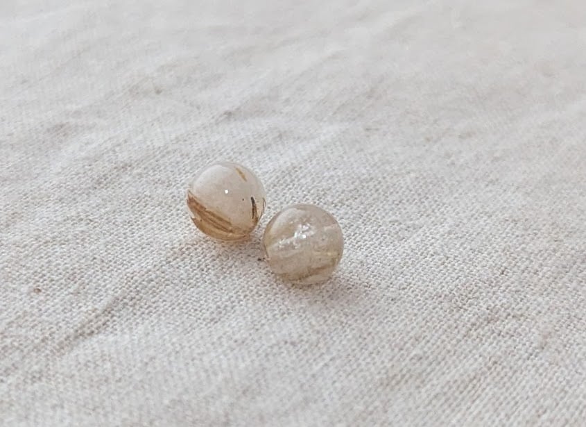 ミルキーな色合いに、優しいゴールド色とはっきりとしたルチルが輝く、一体感のあるルチルクオーツ。